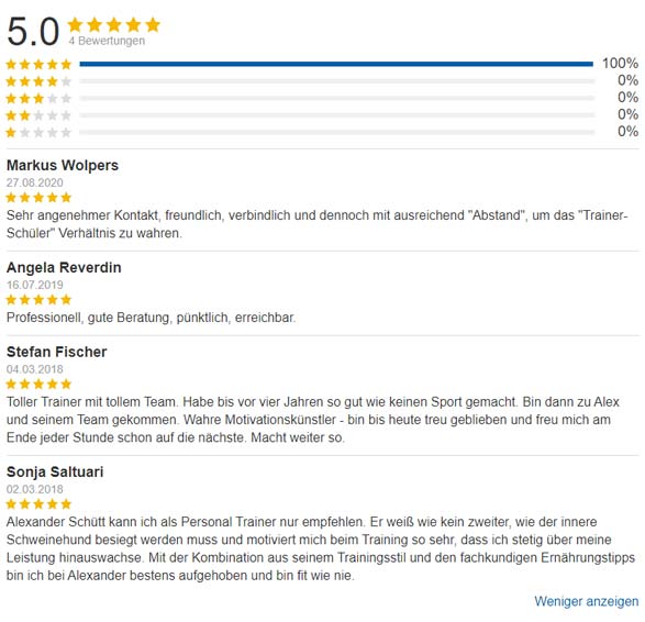 Mein Stundenhonorar liegt bei 150,- EUR. Doch ich erstelle gerne nach dem kostenlosen Strategie-Coaching für dich ein Angebot, wenn du meine Hilfe auf deinem Weg wünschst. Denn es zählt ja nicht die Stunde Sport. Viel wichtiger ist das gesamte Ergebnis, was du erreichst. Und was ist es dir wert, schlanker, fitter und leistungsfähiger zu sein?