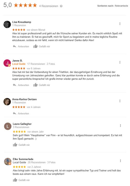 Ich bin als Personal Trainer in Hamburg seit 2008 selbstständig. Seit 2014 arbeite ich als Dozent in der Trainerausbilung und seit 2016 bilde ich in meinem Unternehmen duale Studenten zu Personal Trainern aus.