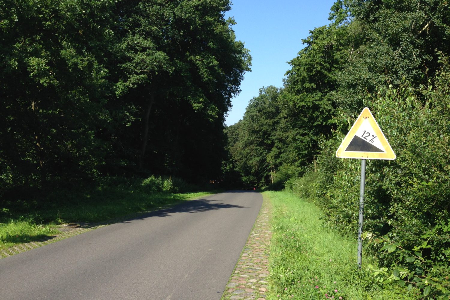 Während der 40km auf dem Rad musste ich heute 4x einen kleinen Berg anfahren. Über 800 Meter ist der Anstieg erst bei circa 6-8% und steigt dann auf den letzten 100 Metern auf 12% an. Bei der vierten Anfahrt war mir oben kurz übel. Da habe ich wohl alles richtig gemacht 😉