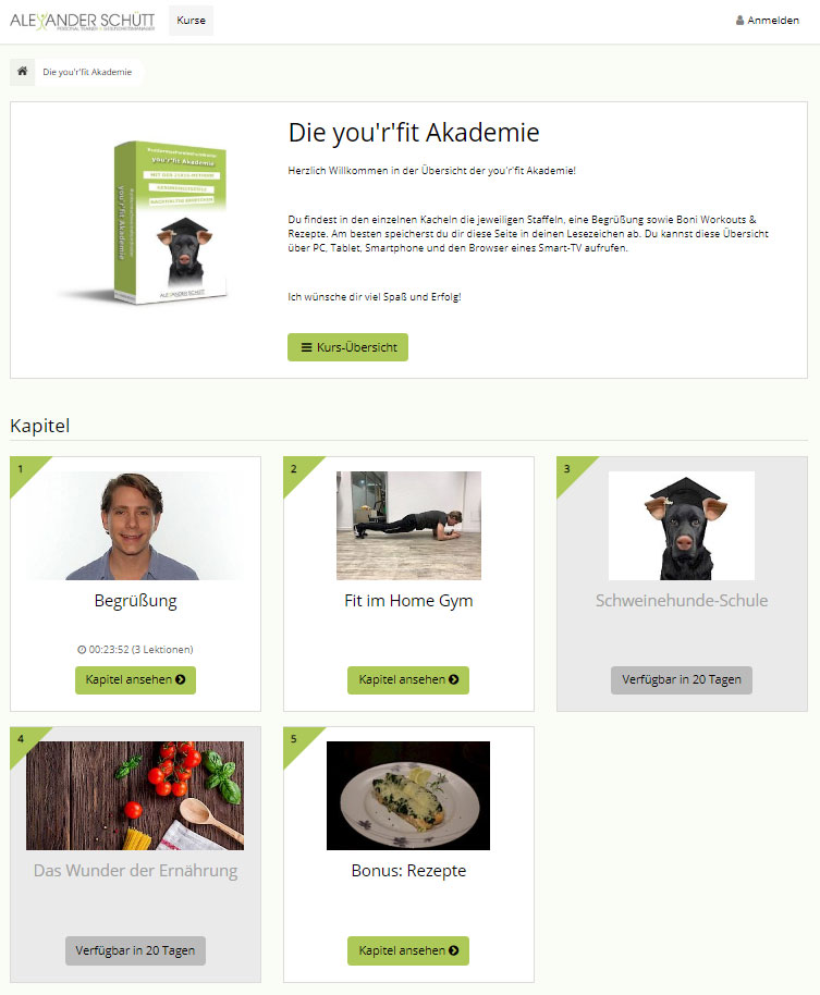 Du kannst die Übersicht der you’r’fit Akademie über jeden Browser aufrufen. Egal ob PC, Tablet, Smartphone oder sogar Smart-TV.